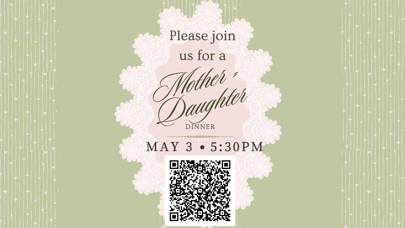 Ladies are encouraged to attend the annual Mother Daughter dinner on Sunday, May 3 at 5:30pm. Please use the link to register.